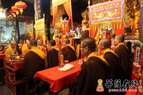 晚上,上海沉香阁举行五大士焰口。五位金刚上师奉请幽冥教主本尊地藏王菩萨等。以清净甘露加持坛场内种种饮食,法味施予“饿鬼道众生”,令它们得蒙佛力加持,出离有期。虔心礼诵,共同祈愿以此殊胜功德祈福消灾、报恩超度,以期冥阳两利、福慧双增;并超度荐拔十方法界“六道群灵”,悉获解脱。法会如法如律,坛场清净庄严。整场焰口佛事进行了近数小时后圆满结束。