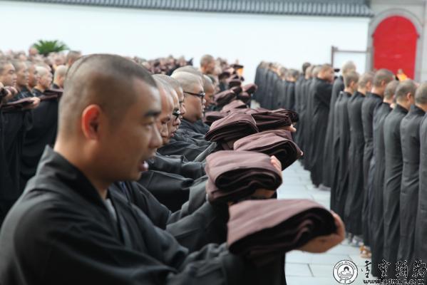 2015年9月17日(农历八月初五),浙江雪窦山资圣禅寺传授三坛大戒法会第五天。经过几天的身心调和,新戒们皆能依轨而行,威仪庠序。
