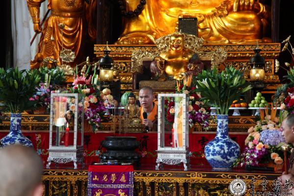 2015年9月14日(农历八月初二),浙江雪窦山资圣禅寺传授三坛大戒法会进入第二日。上午举行了进堂、请引礼仪式,下午为宣堂规、交香板,晚上为教唱念。
