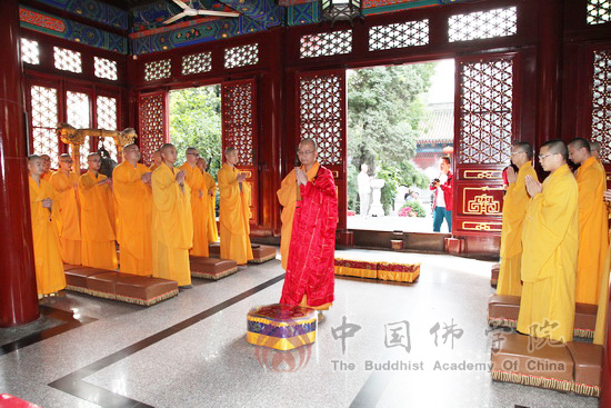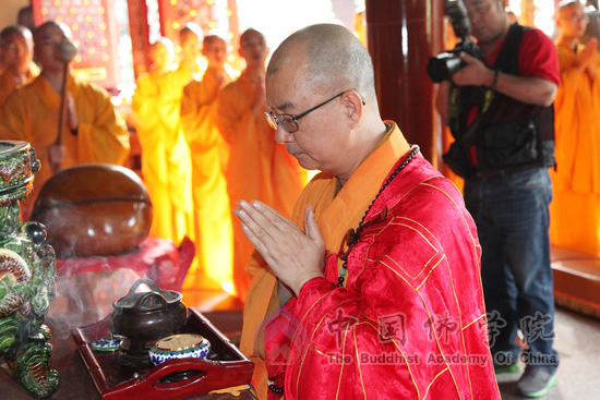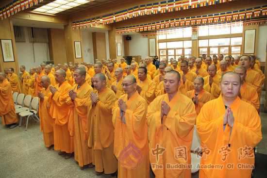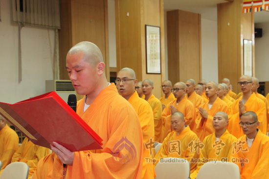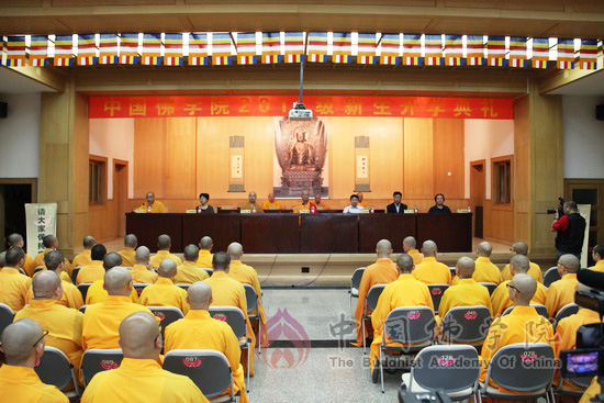 上午9时,全体师生云集大雄宝殿,举行了清净庄严的诵经仪式,中国佛教协会会长、我院院长学诚法师主法拈香。9时30分,在高亢、雄浑的国歌声中,主持人向学法师宣布我院2015级新生入学开学典礼隆重开幕。