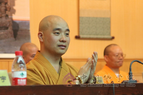 中国佛教协会会长、我院院长学诚法师作了重要开示。学诚法师首先代表中国佛教协会与中国佛学院对新学生表示祝贺!学诚法师在讲话提到,同学们入院学习,处于同一个起跑线,是一个新的开始。学诚法师寄予新生们三点殷切的希望:第一、虚心求学。虚心使人进步,骄傲使人落后。同学们一定要不断发心,求法求学。在学院不仅要学习理论,更为重要的是修行实践。要把教理教义转变成信仰,信仰转变成实践、动力,提升、净化自己的身语意。时时关注这颗虚心求学的心,以诚恳的态度问师求道;第二、断器三过。希望大家一定要断除覆器、秽器与漏器之过。在课堂上,同学们一定要破除自己的执着,以清净心、专注心来听法闻法。只有这样,将来才能承载佛法,承载佛道;第三、树立纯正的信仰。在学院里,不但学习增长佛法知识,更重要的是要培养大家纯正的信仰,只有信仰才有强大的凝聚力。把佛法知识转变成自己内心的动力,心中树立了三宝的形象,学习佛经,理解佛经,才不会变得枯燥无味,才会有活力。