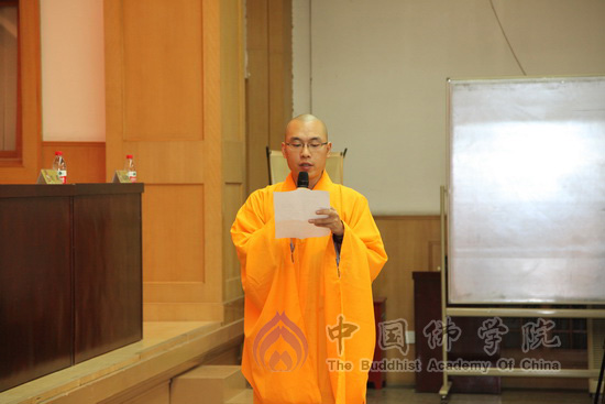 开学典礼伊始,在诸位领导、嘉宾、法师和学长们的共同见证下,2015级全体学僧以饱满的热情和铿锵有力的声音宣读了入学誓词;2013级在校生代表致祝贺辞。