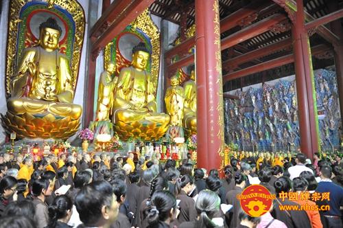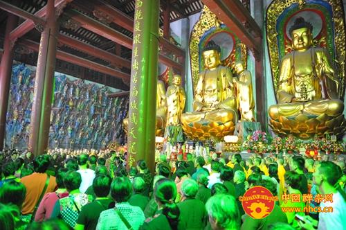 今天凌晨四点,伴随着晨钟,来自四方的善男信女齐聚在大雄宝殿前,依次排班。随后,祈福普佛法会庄严的拉开了帷幕。四众弟子齐声诵读经典,礼拜诸佛菩萨,祈愿世界和平、国泰民安、风调雨顺、吉祥如意。