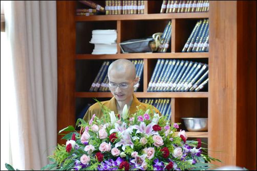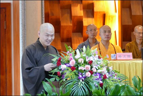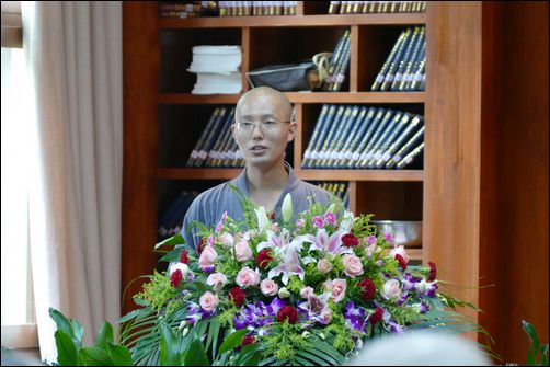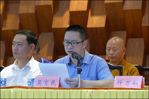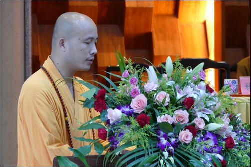 温州佛学院副教务长则生法师宣读浙江省佛教协会、浙江佛学院贺信