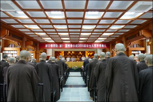 温州佛学院2015级新生开学典礼在安福寺图书馆进行