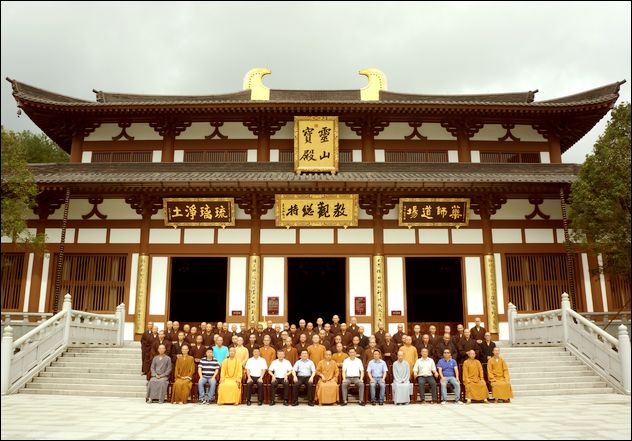 典礼在庄严肃穆的《三宝歌》声中结束。最后,全体领导和全院师生在安福寺灵山宝殿前合影留念。大众法喜充满。