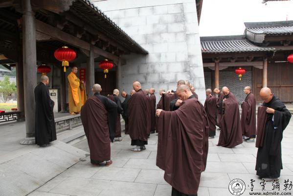 2015年9月16日(农历八月初四),浙江雪窦山资圣禅寺传授三坛大戒法会第四天。这一日的日程为上午教穿袍搭衣,下午教四威仪,晚上为习忏摩。