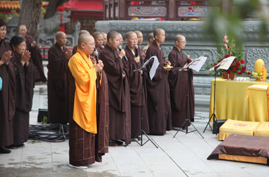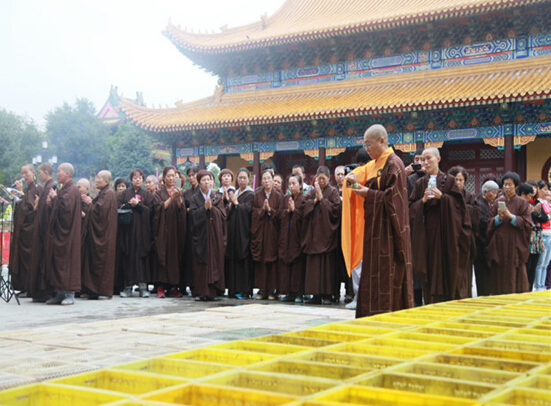 上午9:30,在诵持《地藏菩萨本愿经》后,为圆满此次地藏七法会功德,果城寺特举行隆重的放生活动。
