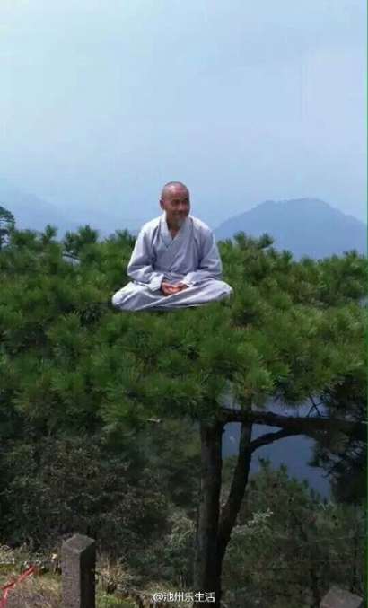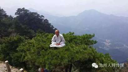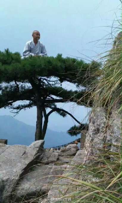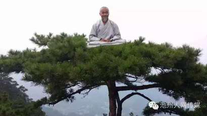 九华山高僧在松树顶上凌空打坐 网友惊叹(图)