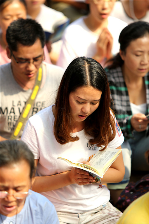 八月十五中秋节,在佛陀的召唤下,四众弟子相聚于慧日寺,扶老携幼,共度团圆佳节。下午一时,蒙山施食超荐法会于三圣殿前举行,信众们以心地光明应和清月,供养诸佛,度过一个意义非凡的中秋。