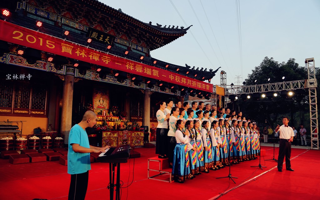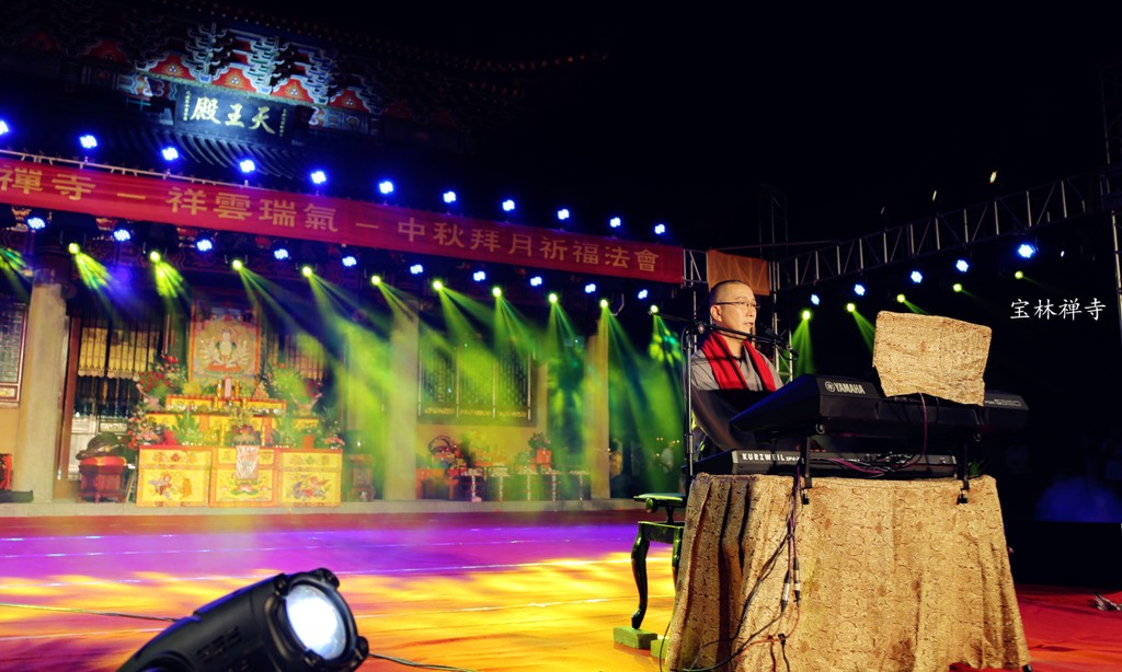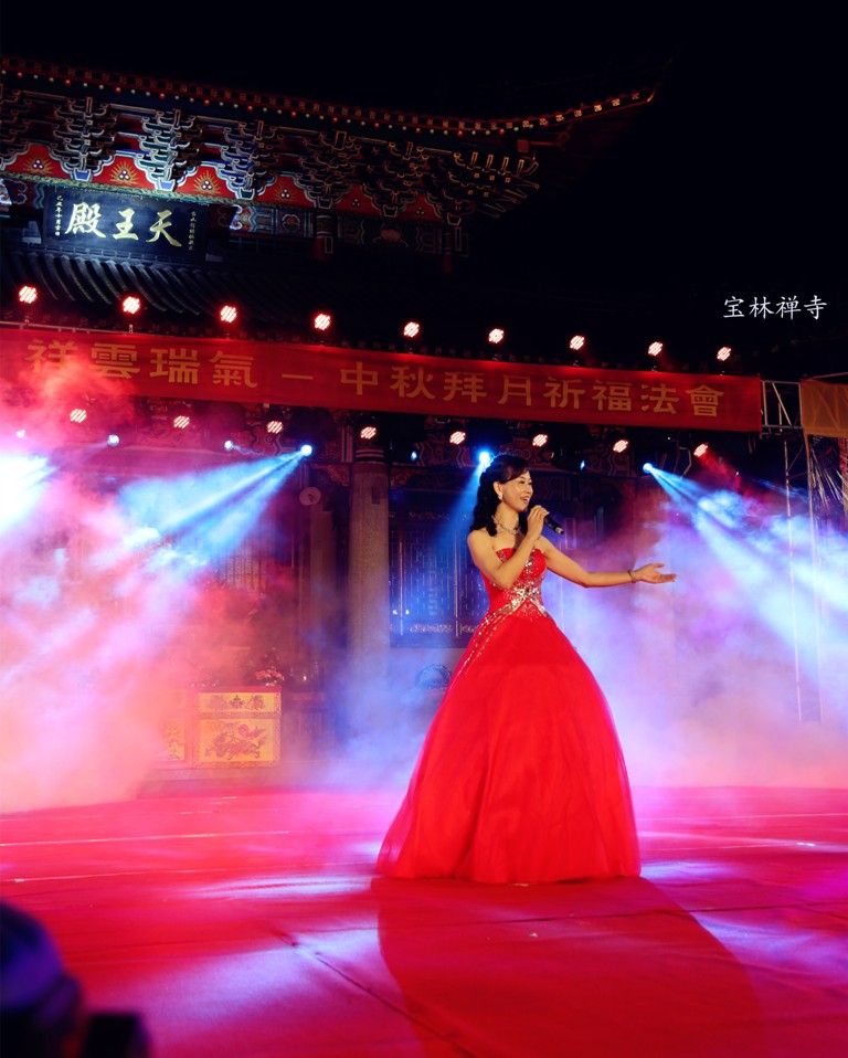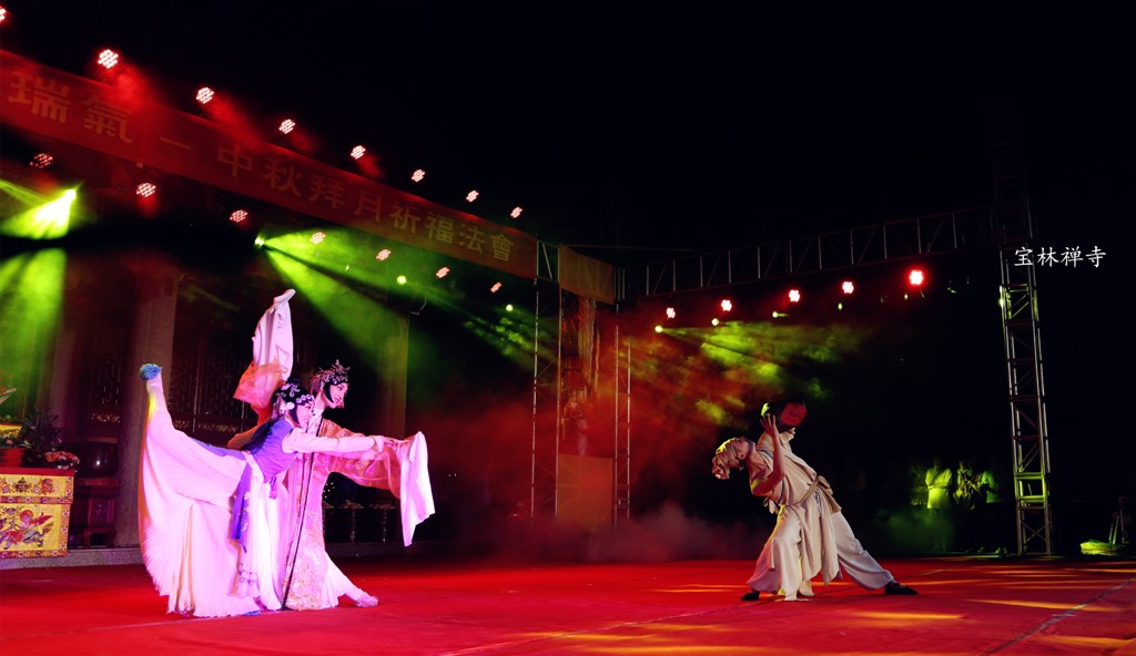 昨天,晚上六时打开序幕,先由宝林禅寺僧众住持庄严的中秋拜月祈福法会,之后,佛教文艺晚会开始。