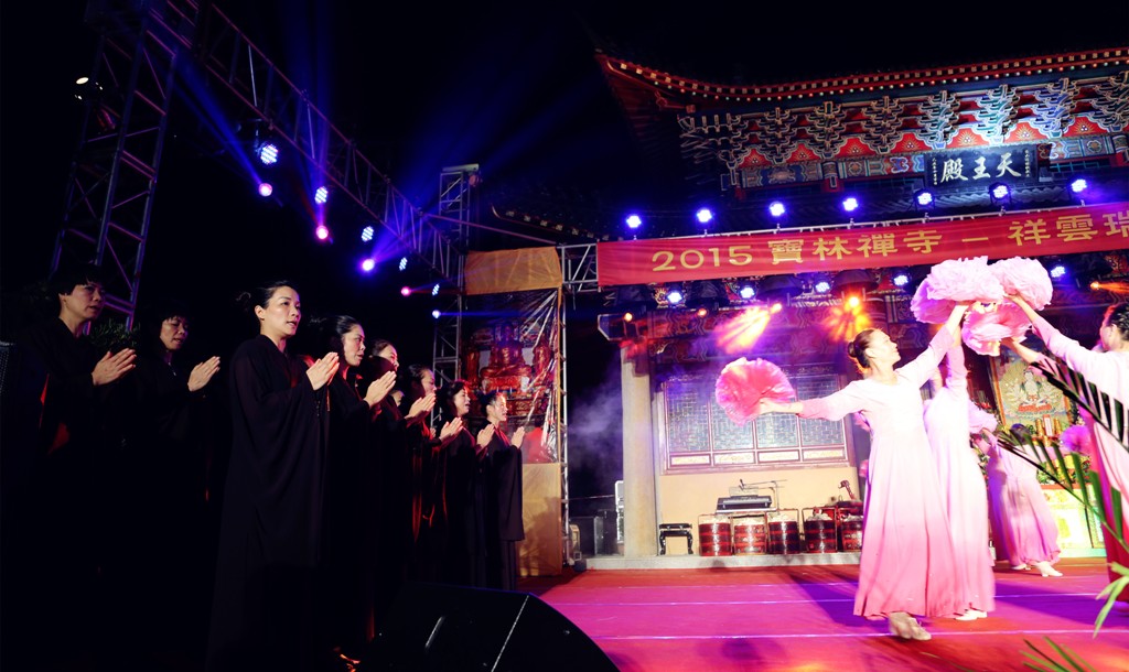 宝林禅寺住持悟演法师以“音声做佛事,梵呗唱和谐”,他从2003年进住宝林禅寺后,十二年来都致弘扬佛法教育、栽培僧众、农禅并行、推广中国传统佛艺,尤其是“观音文化——慈悲喜舍”,他识为我们这个世间太缺少菩萨的慈悲智慧。悟演法师独特的弘法理念更为中斯佛教文化交流铺架起了桥梁,为此,他获得了斯里兰卡僧团公认的大奖,获得了“圣妙法音”的荣誉称号。悟演法师师承韩国舞蹈艺术家金香今教授的世遗《灵山斎之观音舞》和昆舞创史人马家钦教授。他说:佛教第二故乡是中国,所以中国的古老传统文化是佛艺行者必须认真去探究修学和修行。佛艺的本质就是高雅的生活修行,更是灵魂净化提升的过程。我们佛艺人就是用最美的肢体语言律动来供养诸佛菩萨,永远追随不离佛陀本怀原创作品呈现在众人面前。让我们携手并进,打造宝林佛艺文化的新局面,推动佛艺文化普及化,让佛陀的光芒、佛陀的教法深入民间,传播正能量,让佛法真实利益大众,也是我们佛教徒实现《中国梦》的善举。