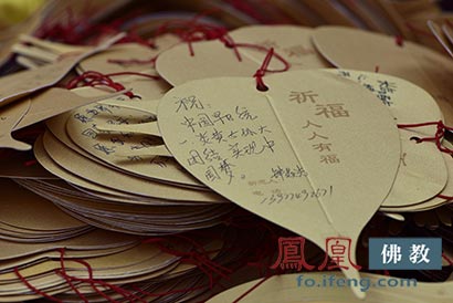 现场信众填写的“心愿菩提卡”(图片来源:凤凰佛教 摄影:佛缘之路)