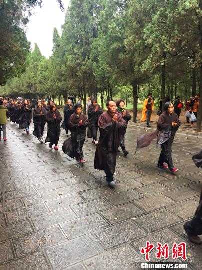 风中菩提”朝圣团信众三步一拜,朝圣少林寺(图片来源:中新网 摄影:周小云)