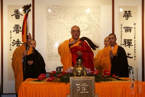 庆典仪式首先恭请中国佛教协会副秘书长、杭州灵隐寺方丈光泉法师宣读中国佛教协会发来的贺电。