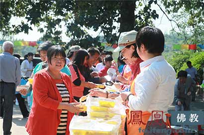 奉斋宣传吸引了大家(图片来源:凤凰佛教)