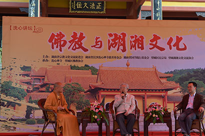 10月1日,洗心讲坛第一天的讲座主题为佛教与湖湘文化,主讲嘉宾妙华法师、郑佳明教授、宣方教授三位嘉宾从湖湘文化人物、性格,湖湘文化脉络,和佛教对湖湘文化的影响三个方面进行了阐述。