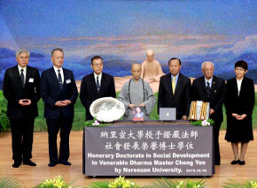 泰国纳里宣大学(Naresuan University)委员会主席卡纱•差纳翁教授博士(Prof. Dr. Krasae Chanawongse)2015年10月18日上午在台湾花莲静思堂,颁发“社会发展荣誉博士”学位给慈济基金会创办人证严上人,推崇证严上人本于“为佛教、为众生”的愿行及慈悲喜舍精神,带领全球慈济人为苦难众生的付出与贡献。