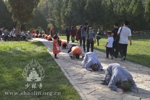 法不孤起,仗境方生,道不虚行,遇缘则应。2015年10月1日至2日,少林寺都市禅堂朝圣团一行30人在少林寺延侦法师、延宗法师的带领下,徒步行脚,经中岳庙、启母阙、嵩阳书院、少林寺,与少林寺方丈释永信大和尚热情交流,聆听大和尚开示,并从山门起三步一拜朝圣达摩洞,受到沿途善信及游客的拥护及赞叹。