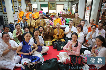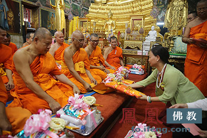 中国佛教海巡团拜见泰国僧王 供僧现场感人至深