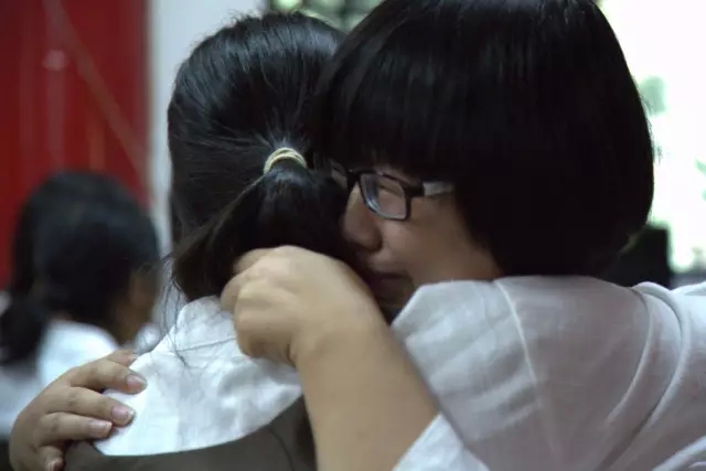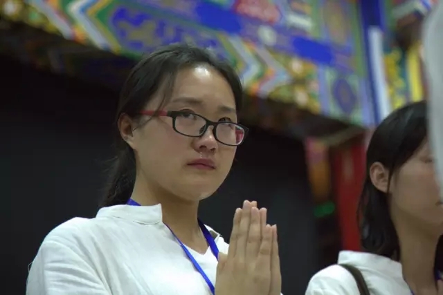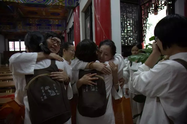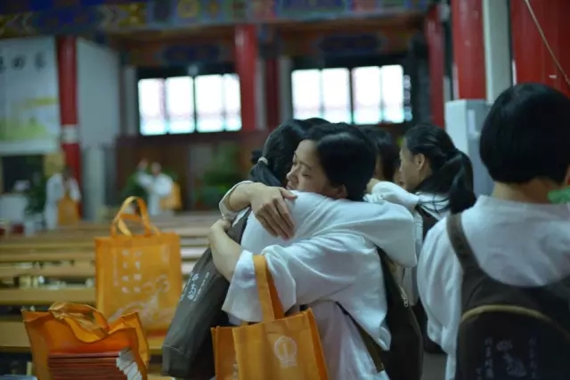 下午4点,经过三天体验,有70多名营员发心皈依三宝。宗性大和尚现场主持皈依仪式,为体验营划上圆满句号。 《散会歌》响起,大家依依惜别。营员们舍不得离开,小伙伴与辅导员们拥抱在一起,流下惜别的泪水。 红墙内外,阳光洒满。本次体验营在秋天收获的喜悦中圆满落幕。