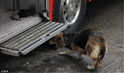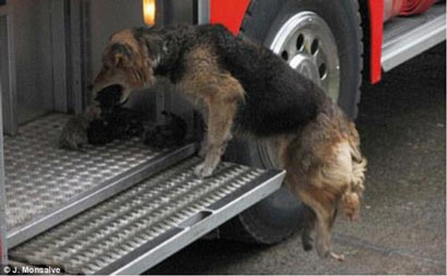据报道,当时这户人家因汽车爆炸引发大火,该牧羊犬冒着生命危险冲进火场,将自己的孩子一个一个叼到附近的消防车上。之后,该牧羊犬还紧紧地依偎在自己刚出生10天的幼崽旁边,守护自己的孩子。
