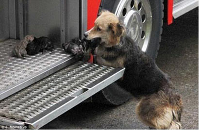 狗妈妈不惧生命危险,最终将所有的幼崽救出火场。