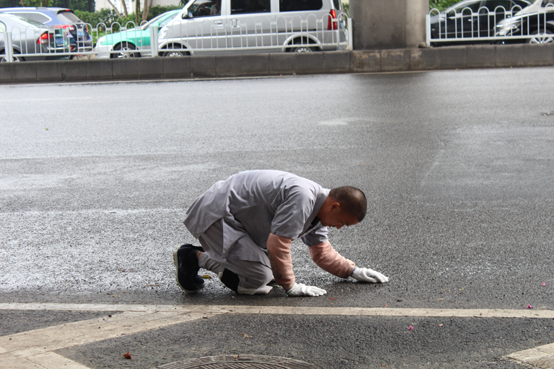 菩提千里路,难挡悲愿行,进入10月份,已经进入广州地界,白云山能仁寺当家如缘法师代表耀智大和尚,前往增城看望如润法师一行,这是在雨后斜阳的马路边合影。