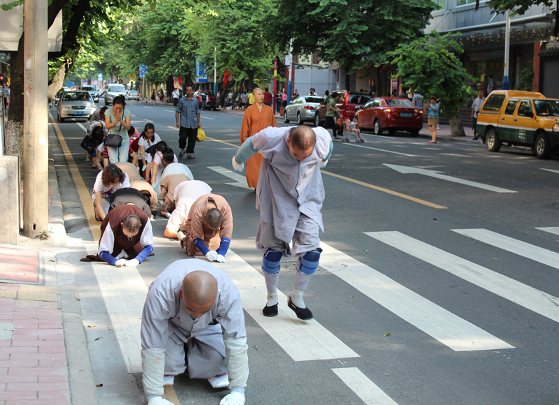 佛法东来的千年历史,恰如波澜壮阔的岁月画卷,多少历代高僧西行求法,或东来布道,历尽艰辛;又有多少祖师大德,发大愿,修苦行,顶礼名山报佛恩。说起来是那么遥远,又恍如昨天,就在2015年的夏天,有两位出家法师,共同发弘誓愿三步一拜,一僧发愿从福建厦门三步一拜到云南鸡足山,一僧发愿从福建厦门三步一拜到广州大佛寺,将动人的历史演绎成鲜活的人文风景,成为今年夏天感动了无数人的佛门善举,流传华夏大地。他们就是厦门闽南佛学院毕业学僧如润法师和祖修法师。