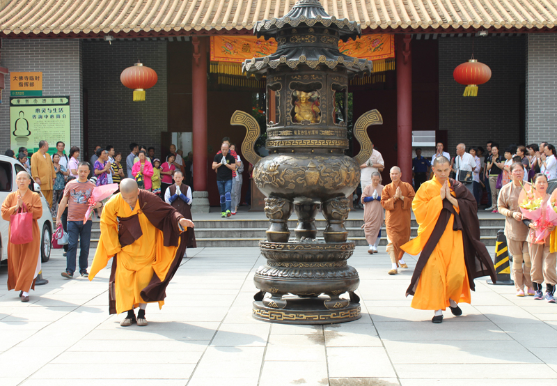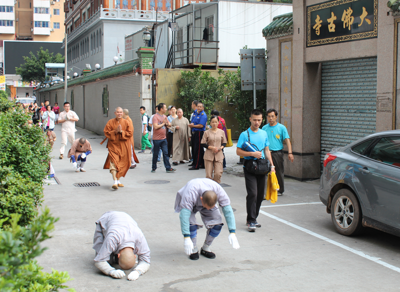 10月9日上午9时,两位法师三步一拜顶礼大佛寺,耀智大和尚欣然起驾大雄宝殿,接引弟子,盛赞两位法师的行愿之旅,是践行菩萨道的难行能行的壮行善举。并和僧俗大众佛前上大供,以此殊胜功德,回向护法龙天,正法永驻,法轮常转;祝福世界和平,祖国昌盛!