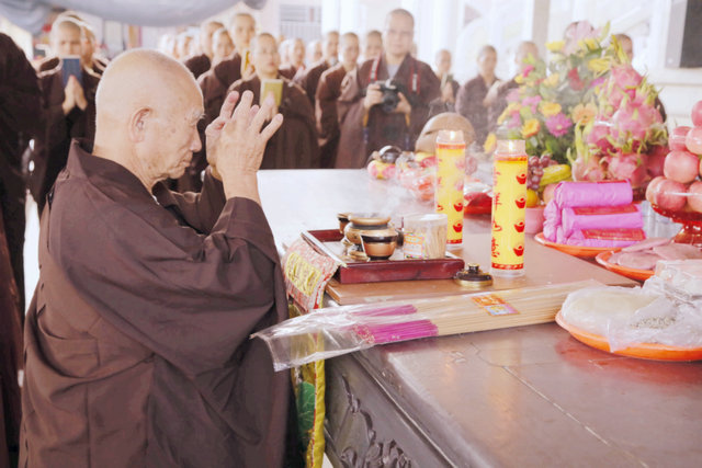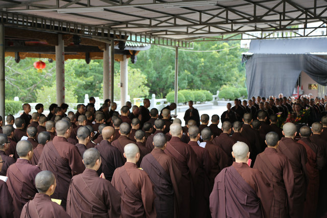法会现场 2015年10月21日(农历九月初九),今天是原广东陆丰定光禅寺老方丈、广东尼众佛学院老院长——宏慧老和尚圆寂六周年纪念日。 上午十点整,由定光寺现任方丈达宜大和尚主法,学院法师师生在宏慧纪念馆前举行了上供仪式。 下午四时,广东尼众佛学院全体师僧及定光寺全体僧众、护法居士等三百多人在宏慧纪念馆前举行缅怀老院长宏慧长老追思法会。于戒定真香之时,僧俗二众虔诚恭诵《金刚经》,追思法会庄严而隆重! 重阳节,倍思亲,回顾上个世纪八十年代恢复宗教政策后,定光寺已故的方丈宏慧老和尚历经二十余年的时光,呕心沥血,不辞辛劳,挑起重新恢复定光寺的重任,从当初只有几间破旧的小庵房到老方丈2009年往生,定光寺已是享有“岭南一枝独秀”之美誉。老方丈怀着办学兴教,弘法利生的悲愿,寺院集中力量创办学校,培养佛教人才,弘扬祖国的宗教文化,至今已为全国各地佛教寺院输送了大批佛教人才。 虽然老和尚已经往生六周年了,但是他的那份坚定信念,他的那份伟大宏愿,永远都留在了广大四众弟子、广大莘莘学子的心田。祈愿老和尚能够乘愿再来,接引后学,普度更多的众生。 这正是: 宏开讲筵树德立言留楷模 慧润禅林培兰植桂毓精英 |