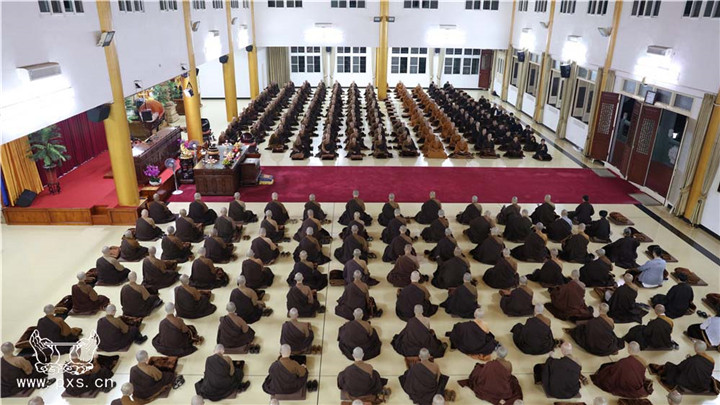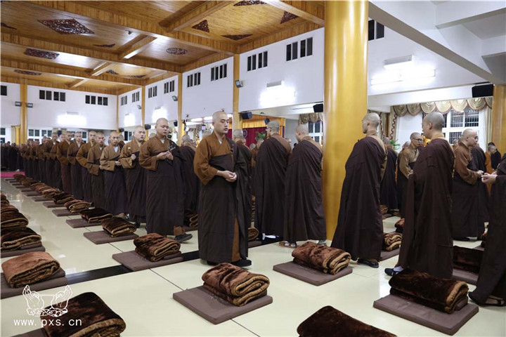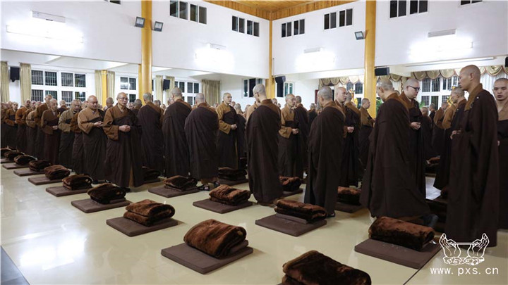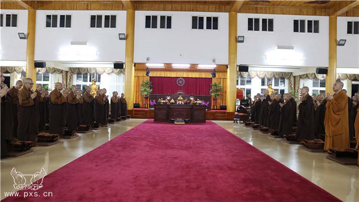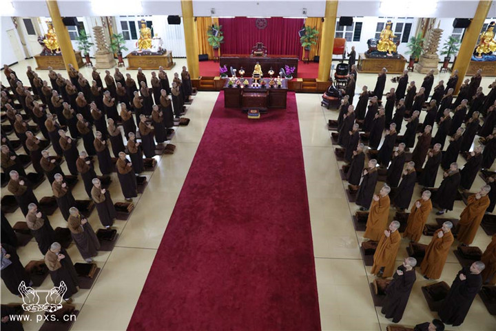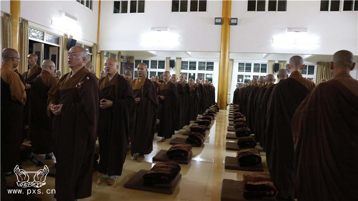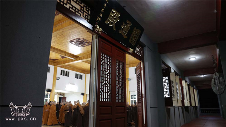 这是自农历九月初一日,平兴寺僧众开始的2015年“冬季念佛共修”。依据平兴寺常住的学修宗旨“学律为本,兼学经论,念佛为归,般若为导”,每年常住皆组织大众于此期间念佛共修近四个月。平兴寺所有的比丘师父、沙弥师父、净人等三百余众,每晚六点至七点于圆通殿念佛一小时。