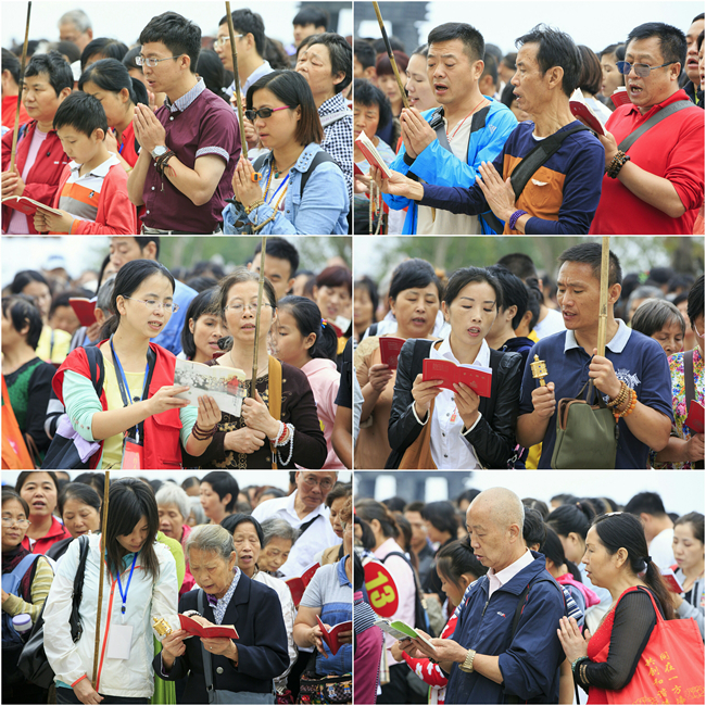 朝礼团队主要以南昌信众为主,也有不少来自全国各地。上至年近九旬的老人,下至蹒跚学步的幼童,其中还有很多是以家庭为单位前来。