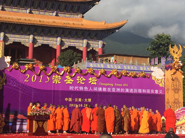 2015年10月28日上午,2015崇圣论坛在大理崇圣寺隆重开幕。来自澳大利亚、英国、斯里兰卡、孟加拉、柬埔寨、老挝、越南、日本、匈牙利、印度、尼泊尔、缅甸,印度尼西亚、泰国、俄罗斯等18个国家及港澳台地区的多位僧王、宗教领袖,海内外佛教学者,云南三大语系僧团代表及大理崇圣寺四众弟子500余人济济一堂,共同见证这场文化盛事。