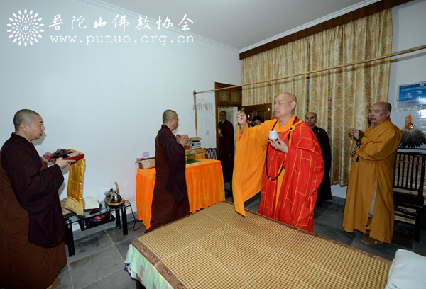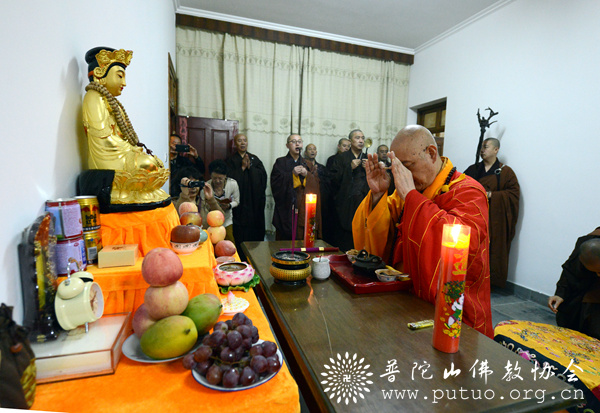 浙江普陀山佛教协会会长道慈大和尚为古佛洞修闻法师“送关”