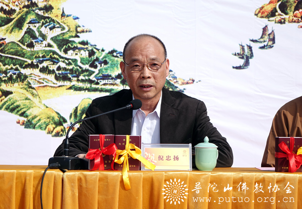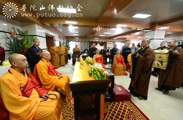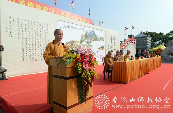 图8:颁证启动仪式由省佛协副会长、普陀山佛协副会长惟航法师主持