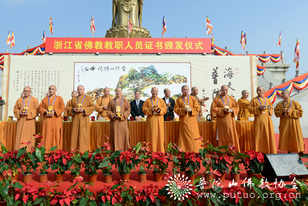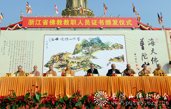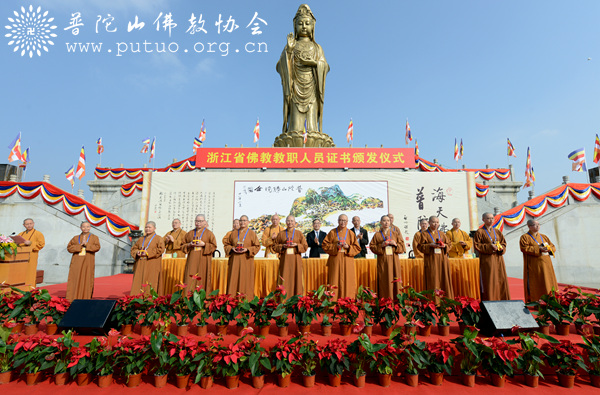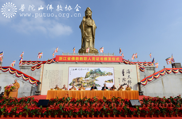 浙江省佛教教职人员证书颁发启动仪式在普陀山南海观音广场隆重举行