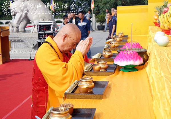 颁证仪式举行前,参加颁证仪式的僧众在普陀山南海观音广场举行了隆重的祈福法会。法会恭请道慈大和尚、怡藏大和尚及各位省会副会长共同为获得佛教教职人员证书的僧人们祈祷祝愿。