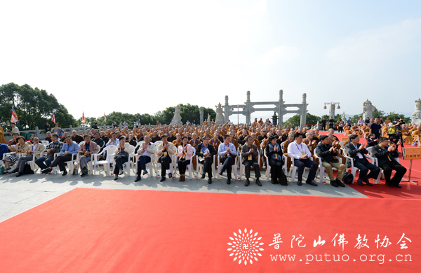 图1:浙江省佛教教职人员证书颁发启动仪式在普陀山南海观音广场隆重举行