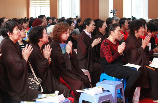 2015年10月18日传喜法师前往镇江报恩禅寺主持心灵讲座及蒙山甘露施食法会。法师为听众们简单举例了中国古代的衣冠文化。包括衣、带、笄、冠、还有古代皇帝的冕旒;以及庙堂文化中琮、壁、圭,其设计都蕴含了深刻的含义。法师还例举了现代社会的乱象滋生,人与自然、人与物、人与人、人与自己的关系,都在日益恶化,比如环境问题,中国人以青山绿水为代价换来金山银山。人与人之间缺乏信任,比如现在流行的传销,激发人性很深的罪恶,参加者为了利益甚至会欺骗最亲的家人。在微信的时代,我们一天的时间都被碎片化,成为手机的奴隶,号称“低头一族”。但尽管如此,佛教还得依靠网络来传播,所谓“应以魔得度者,即现魔身说法”。我们学习佛法的道理可以利用手机的方便,但实际的修行一定要抛弃现代手段。