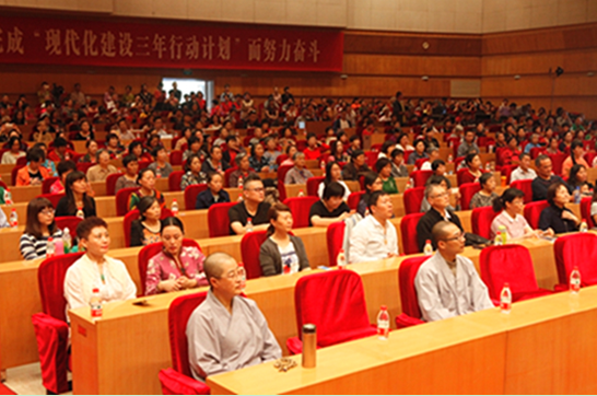 下午一点半,传喜法师举行了题为“佛陀行”的佛法讲座。有上千名来自江苏各地的信众和朋友参加讲座。法师开示:佛法“无人相,无我相”,“无眼耳鼻舌身意”的智慧需要在我们在生活当中实践。做到不着于相,而转人生的烦恼为欢喜。人生的高度提高了,对生命的理解就不一样,看待事物的视角也会不一样。夫妻的吵架也好、孩子的哭闹也好、事业的失败也好,用佛法的智慧辩证、长远、超越地看待,所见无不是花,所思无不是月,一切都是最好的安排。