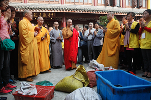 10月21日农历九月初九重阳佳节,受长泰禅寺惟悟法师之邀,传喜法师主持了寺院的重阳节放生法会。