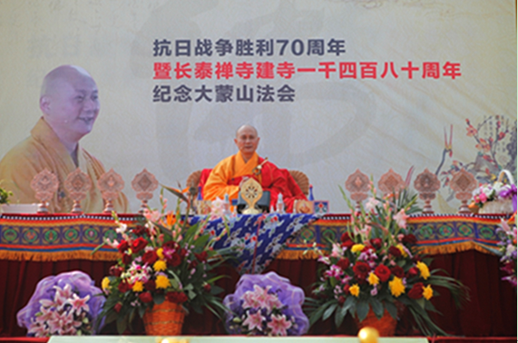 下午,传喜法师主法抗日战争胜利70周年暨长泰禅寺建寺1480周年纪念蒙山法会。法师开示:重阳节,我们应该多忆念自己的祖先。今年是反法西斯战争胜利70周年。二战中,共有三千多万的中国军民罹难,四百万的将士牺牲,他们都是我们的先辈。传喜法师在法会上说,自己的爷爷,就是南京大屠杀的见证者。在人类历史中,出现过很多战争,人类需要佛法的力量去教化生者,超荐亡者。九九重阳,是登高望远缅怀先祖的日子,但世间再高的山,都达不到佛法的高度,佛法的高度是宇宙和极乐世界的高度。