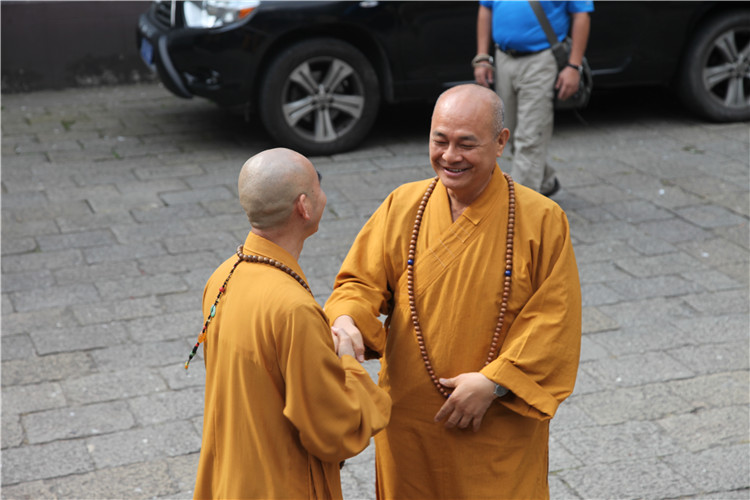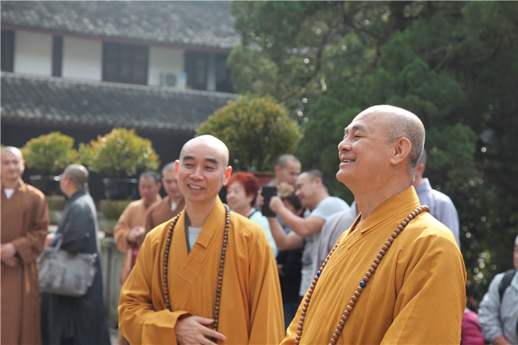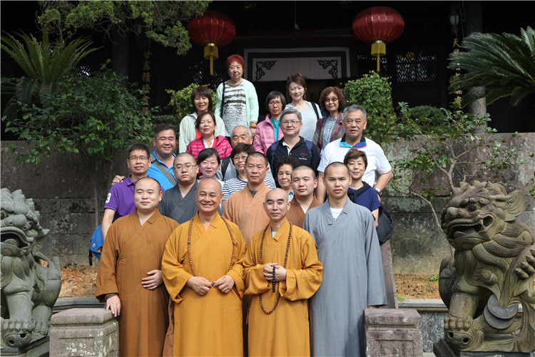 10月21日上午,新加坡佛学院院长广声法师一行到宁波天童禅寺参访,受到宁波佛教协会会长,天童禅寺方丈诚信大和尚的热情欢迎。