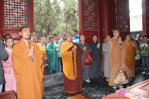 少林寺法师与许昌白兔寺信众一起虔诚礼佛