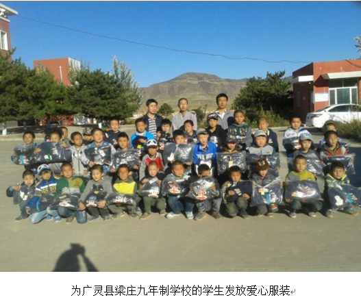 2015年国庆前夕,海外中国教育基金会义工胡敏峰先生委托广灵极乐寺和OCEF基金会义工,向广灵县的贫困学生发送冬季服装,这批崭新的爱心服装其中有羽绒服、棉衣、加厚绒衣、卫衣、运动三件套、书包等,共计1073件。