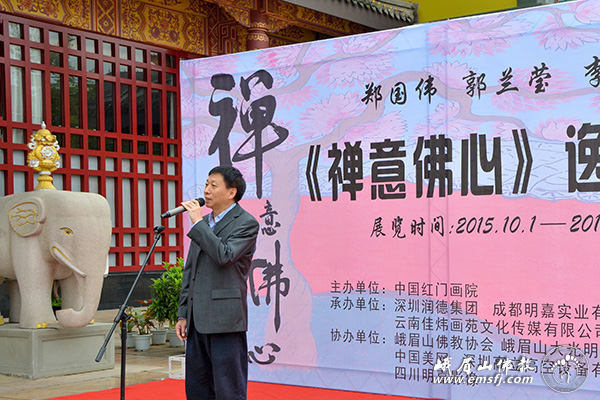 肖铭、郑国伟先后致辞,对峨眉山佛教协会对此次画展提供的各种支持、帮助致以最诚挚的谢意,希望以后能一直保持与峨眉山佛协、大光明书画院的交流合作关系,为峨眉山佛教文化事业的发展奉献自已的一份绵薄之力。