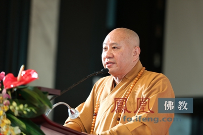 中国佛教协会副会长、广东省佛教协会会长明生法师致辞(图片来源:凤凰佛教 摄影:李保华)