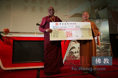 广东佛教界向斯里兰卡佛教界捐款100万元。(图片来源:凤凰佛教 摄影:李保华)