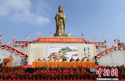 浙江省佛教教职人员证书颁发启动仪式(图片来源:中新网 摄影:昌其)
